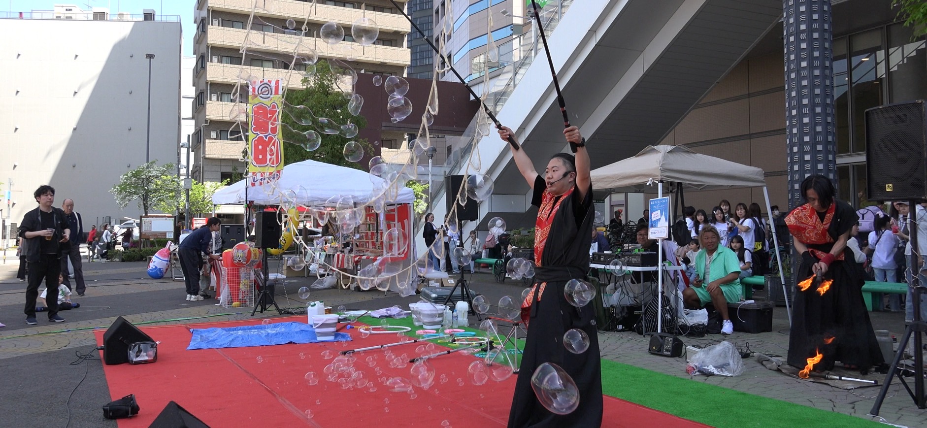 2025年4月19日、川口駅前にて開催されたマルシェイベント「川口縁日フェス」にて、ファイアーバブルショーを実施しました。